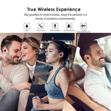• 【One-Step Pairing & Touch Control】Open the true wireless earphones charging case they’ll automatically connect to the last paired device. By touching either earbuds to answer/hang up the phone, play/pause, previous song/next song , volume up/down, and access to other functions, the operation is very simple and convenient.